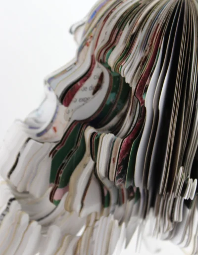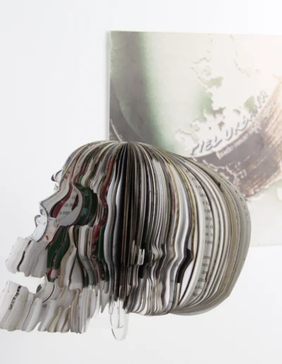 Esculturas autorretrato de libro alterado mediante recorte y reensamblado.