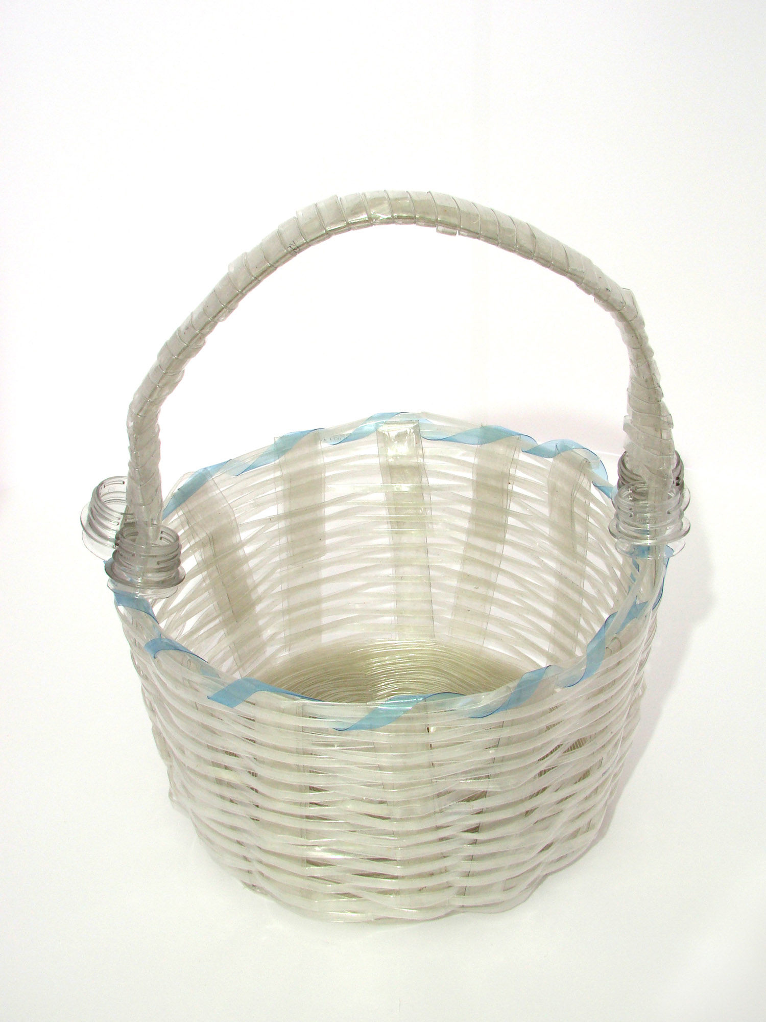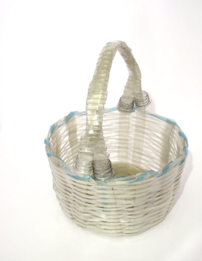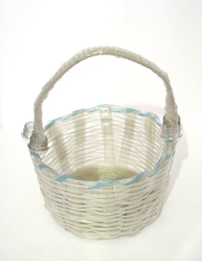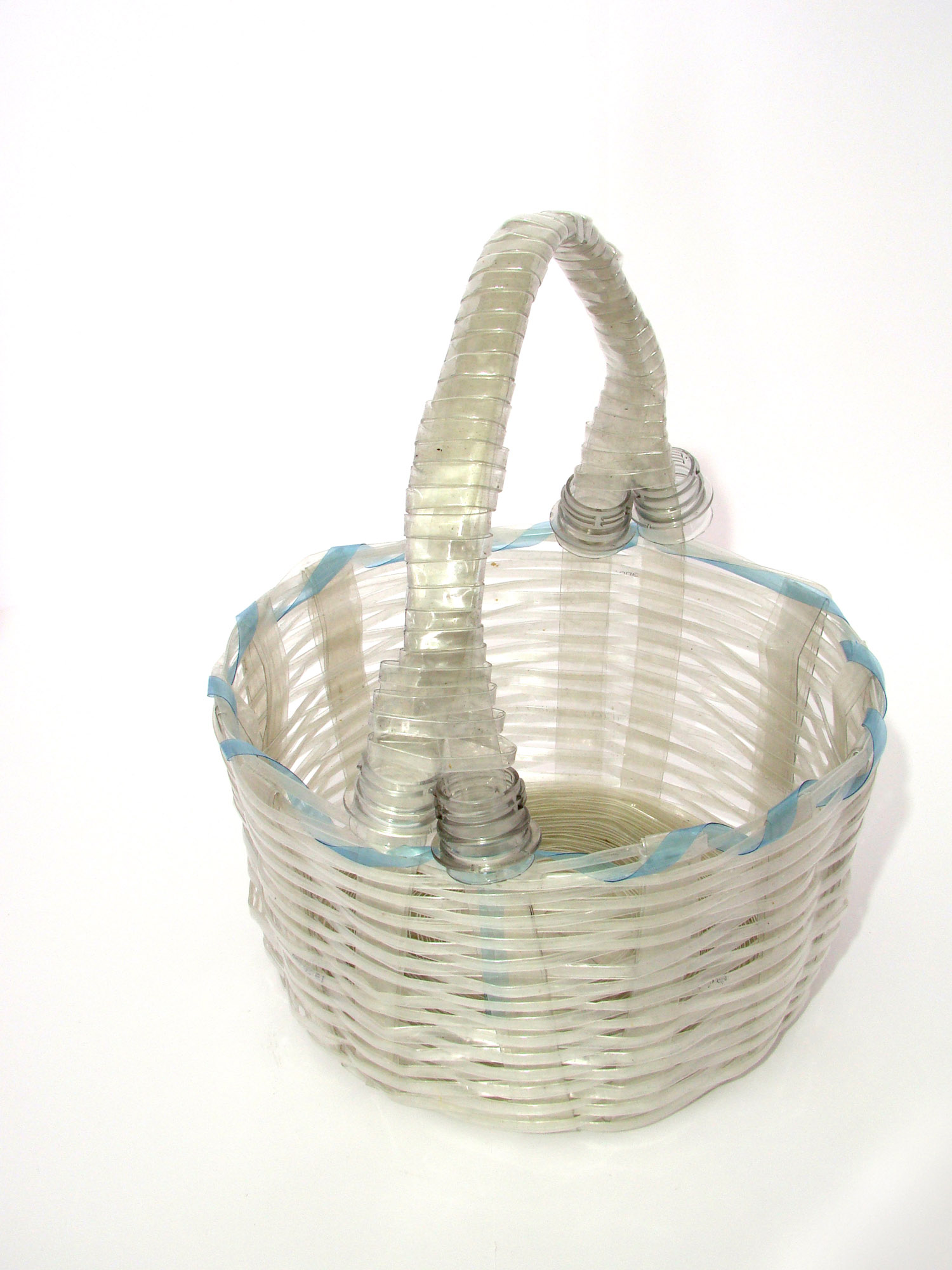 Canasta PET (2011), canasta elaborada con 20 botellas de plástico PET con técnica artesanal, 32 x 23 x 23 cm. Diseño premiado en ECO-creación 2011 por Architectural Digest y Ciel.