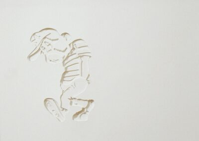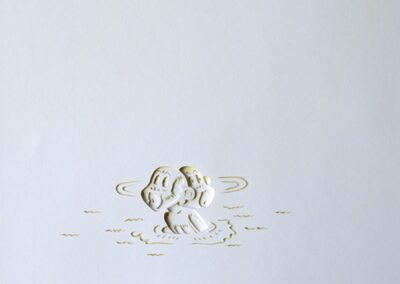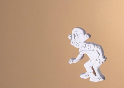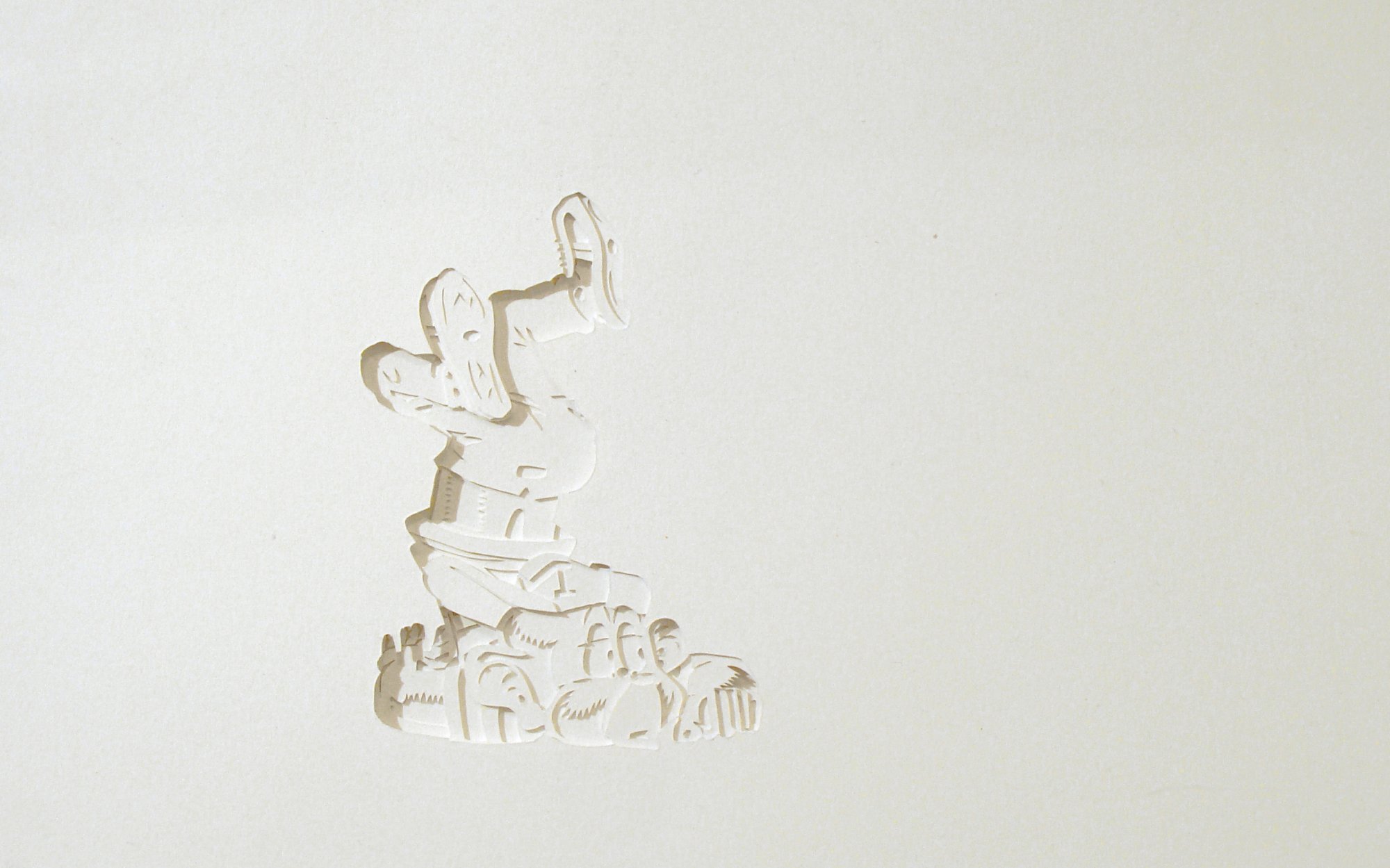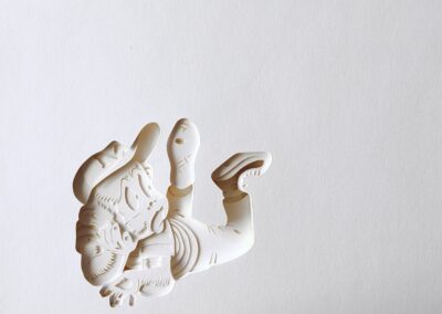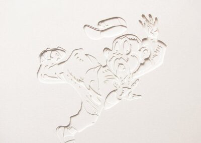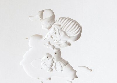 Memín Pinguín es un personaje clásico de la caricatura mexicana del siglo XX, su caracteristica representación estereotipada del afrodescendiente era muy notable. En esta serie se le dibuja mediante el corte de papeles blancos, dejando que las sombras recreen situaciones sin coontexto del personaje.