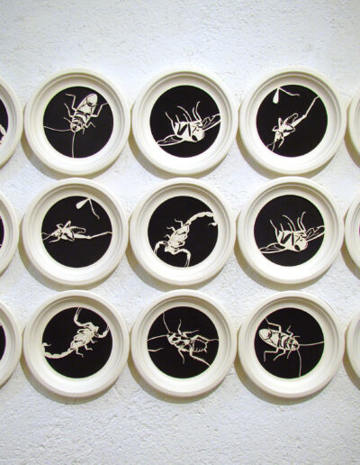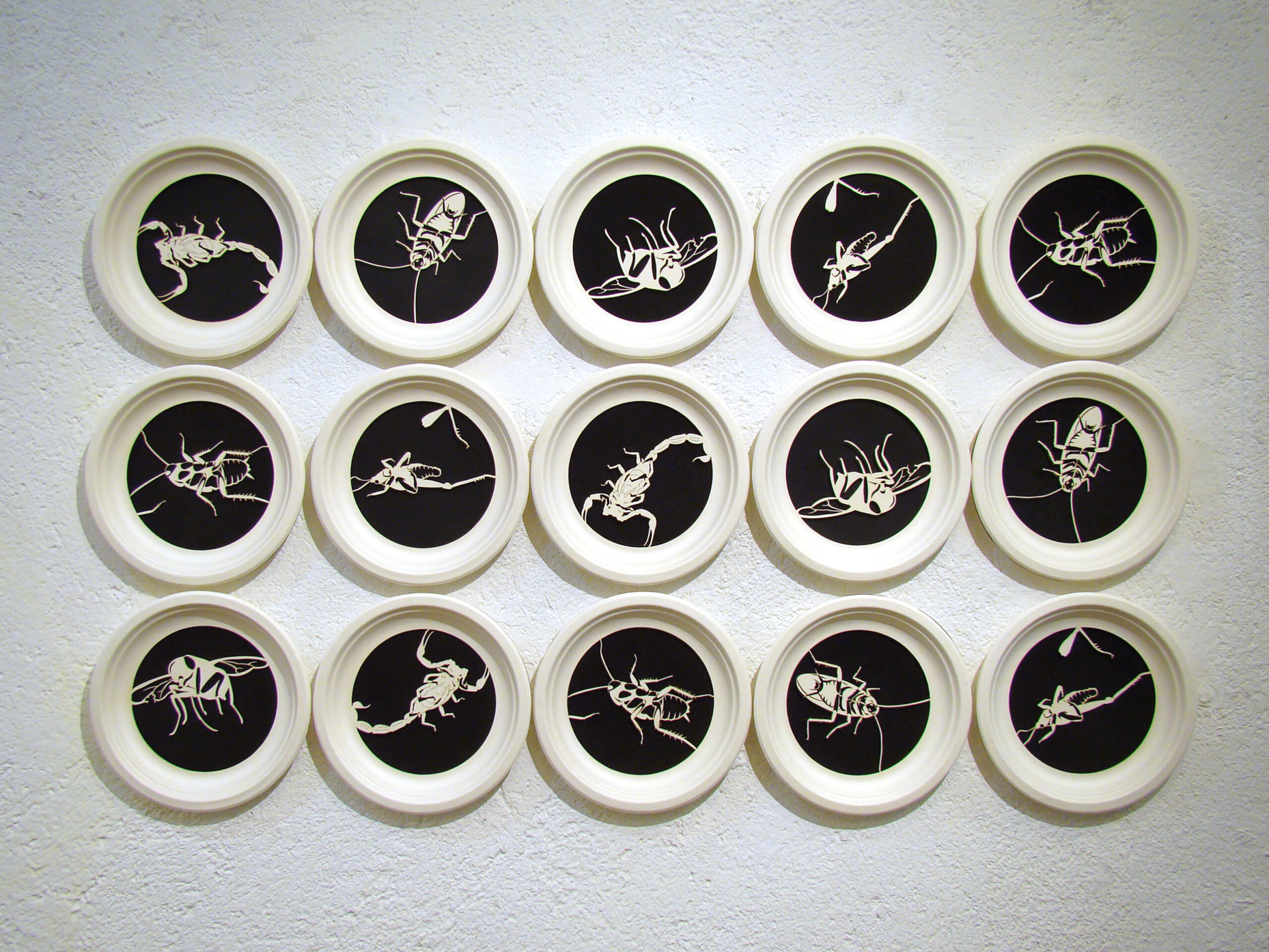 Utilizando platos biodegradables y con corte laser, insectos y arácnidos dejan testimonio de una sustentabilidad futura (no tan lejana) para la alimentación humana ante la debacle ecológica.