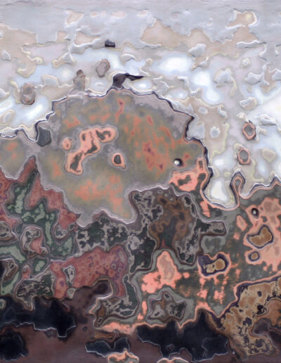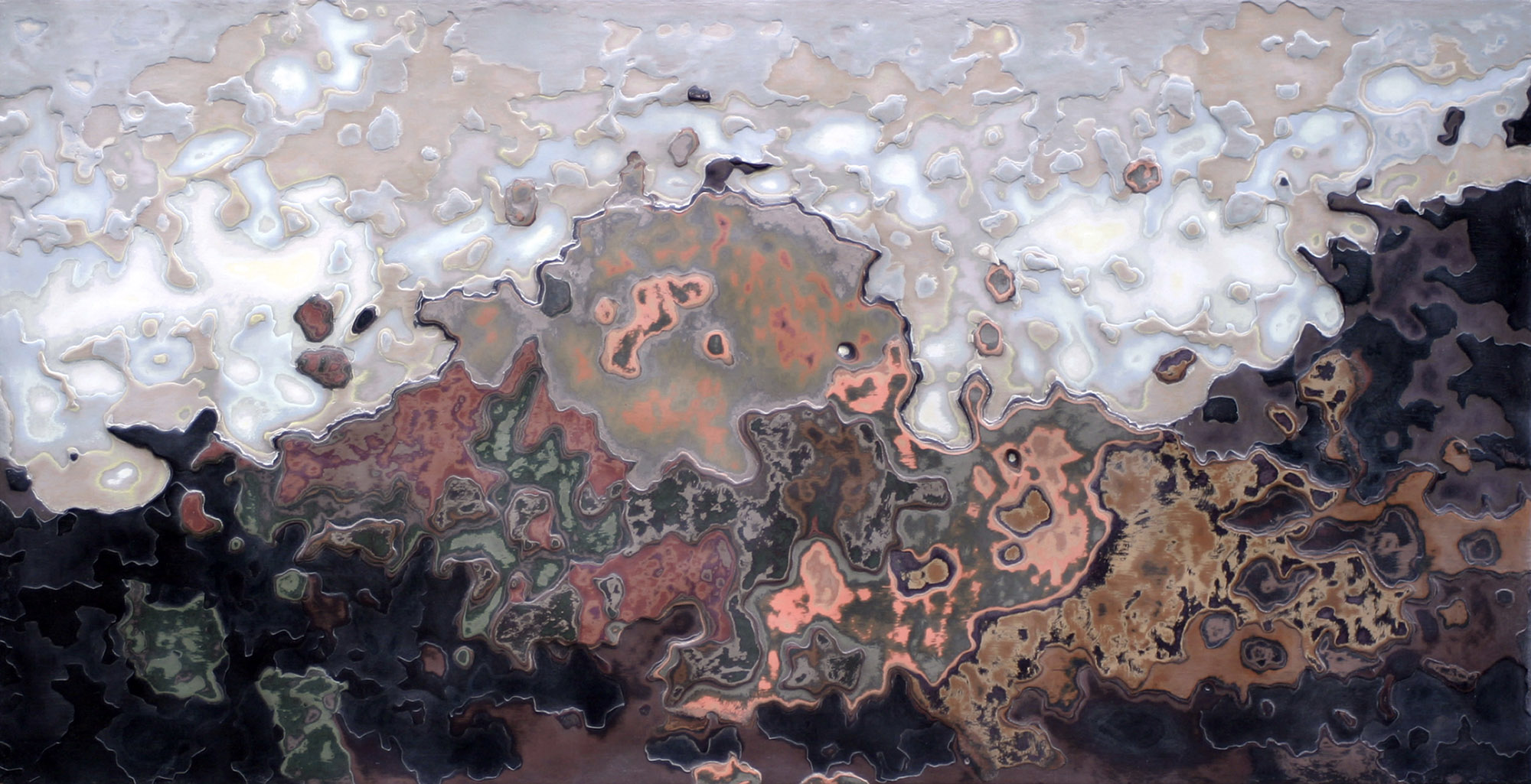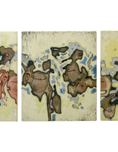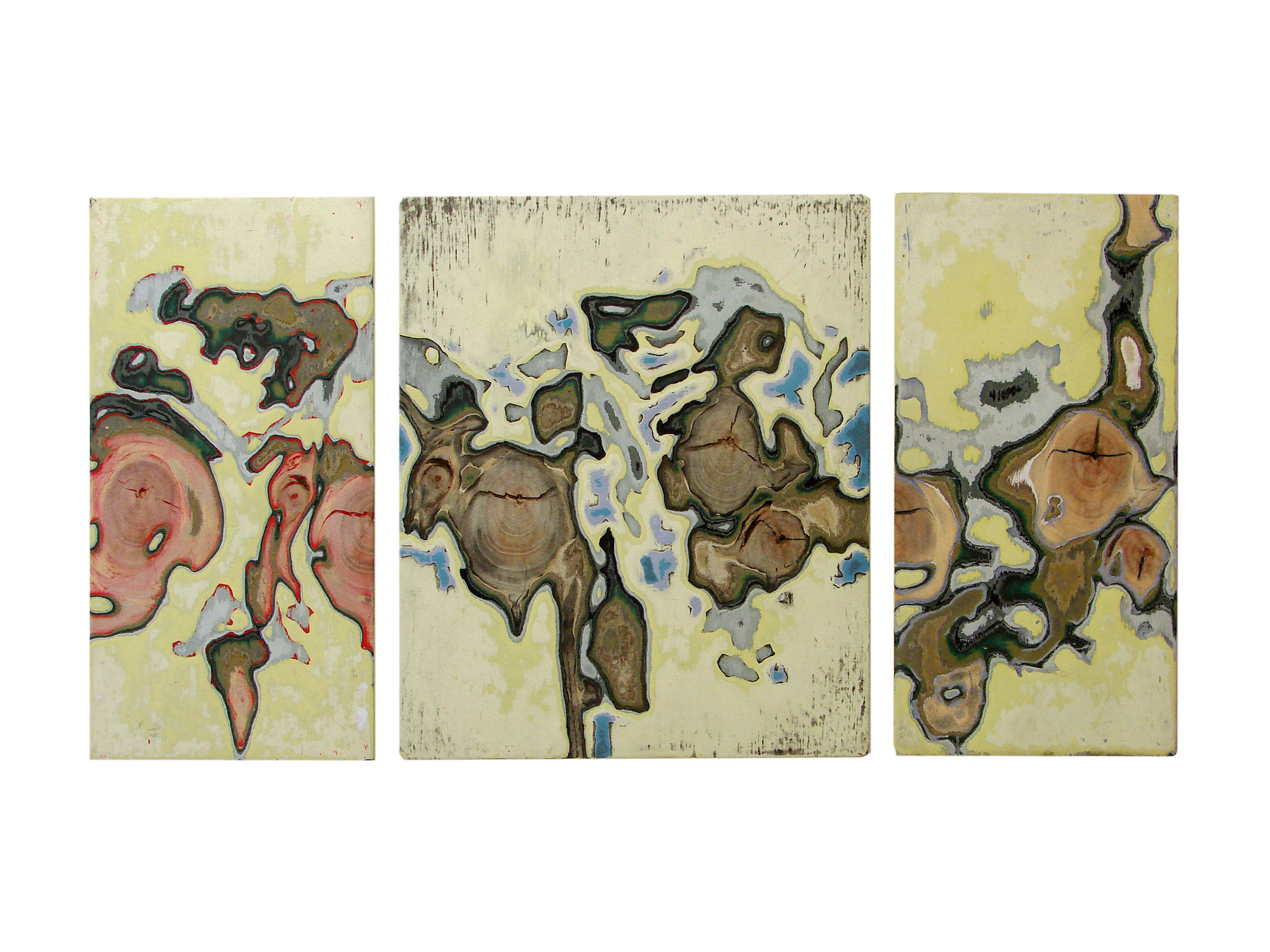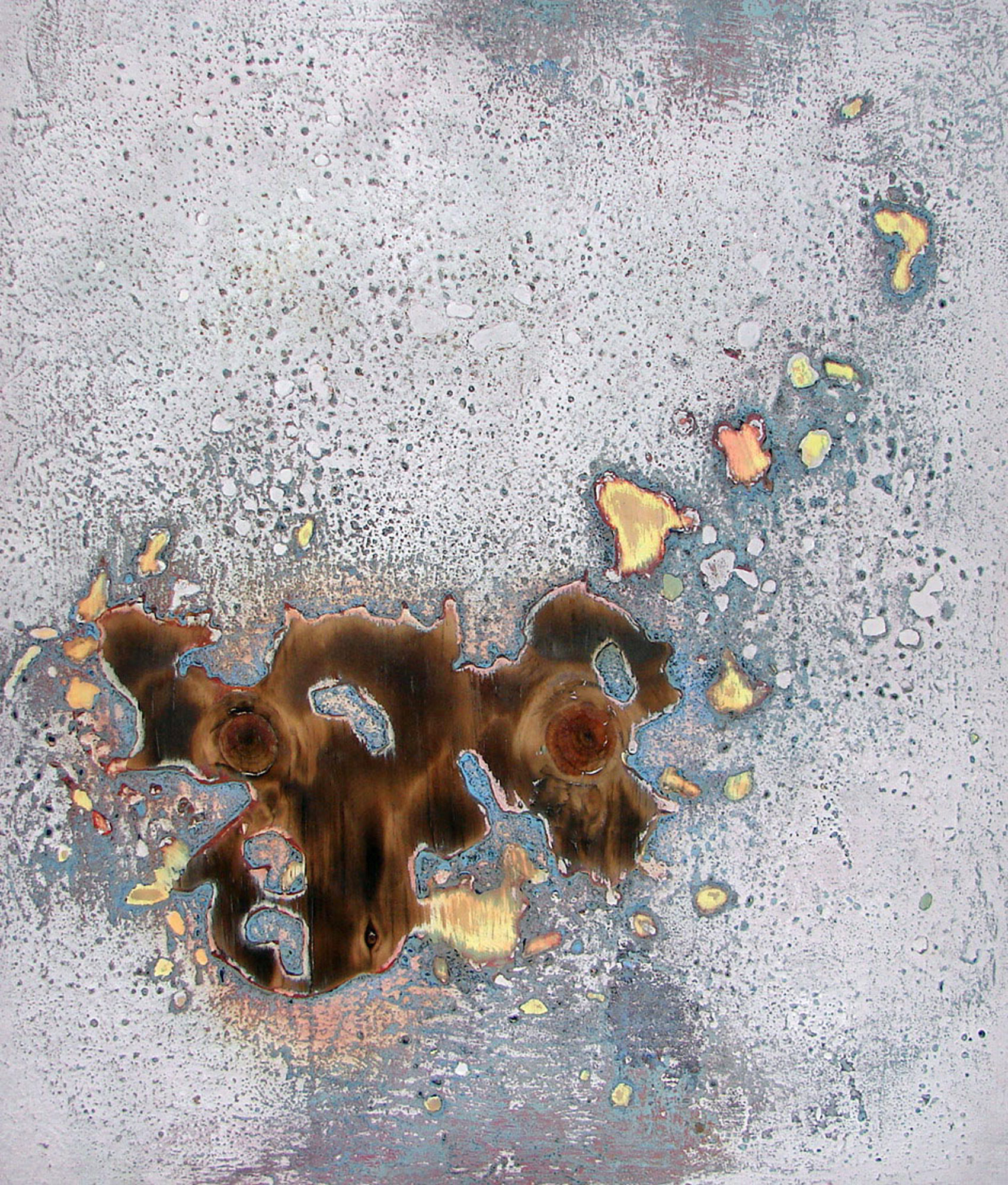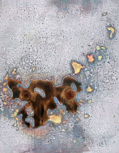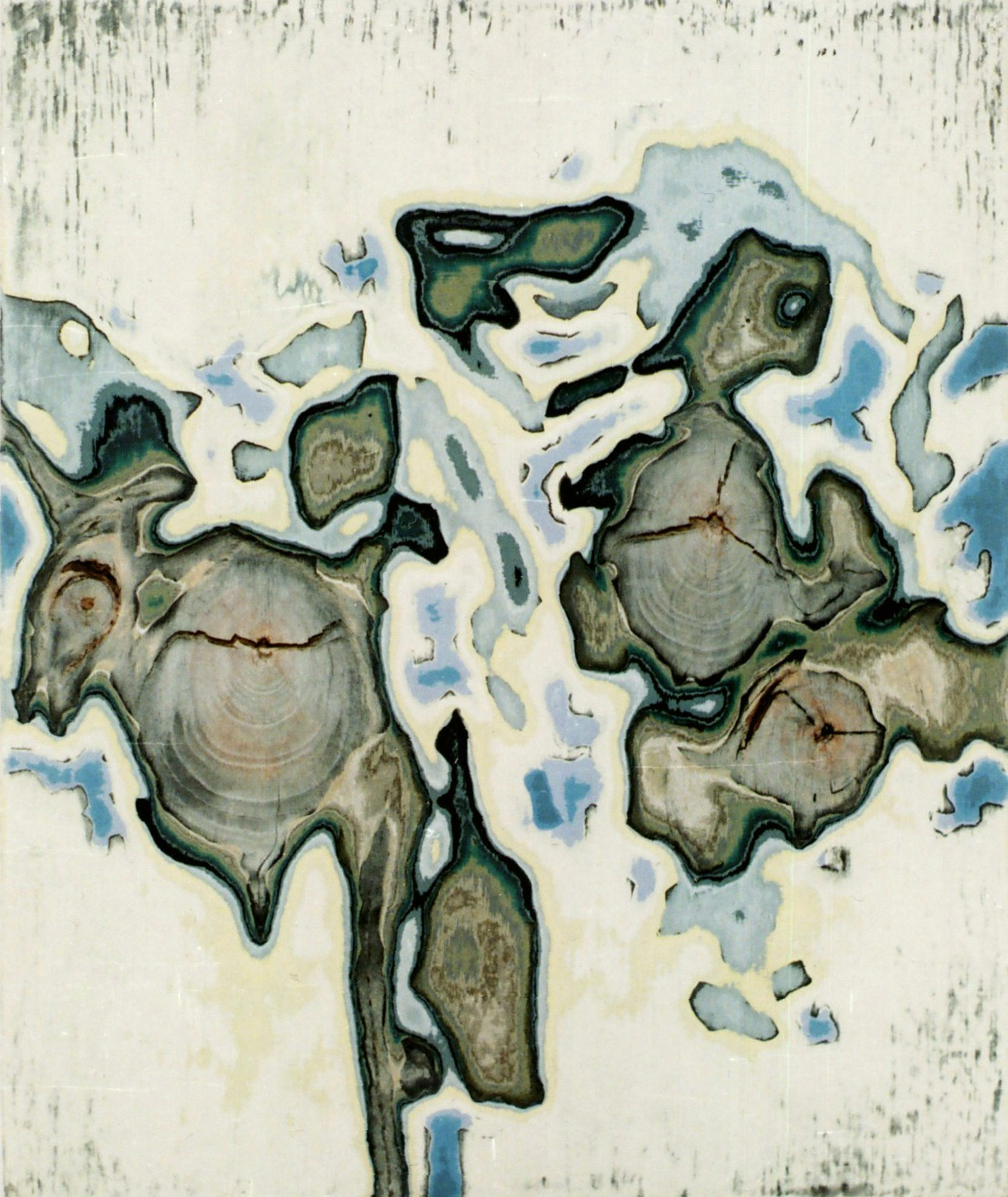 Capas de vinílica y acrílico sobre madera pasadas por lijado y desgaste