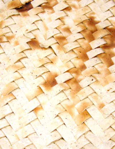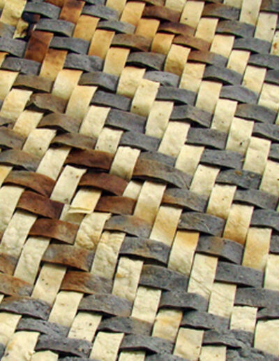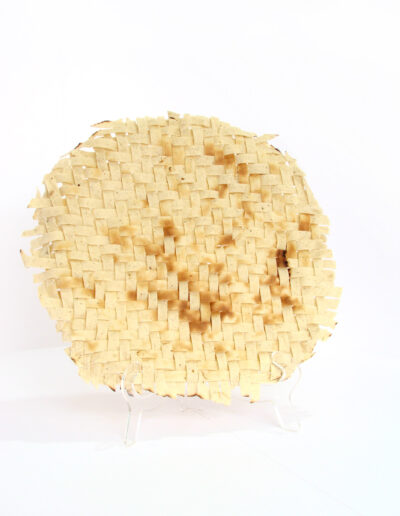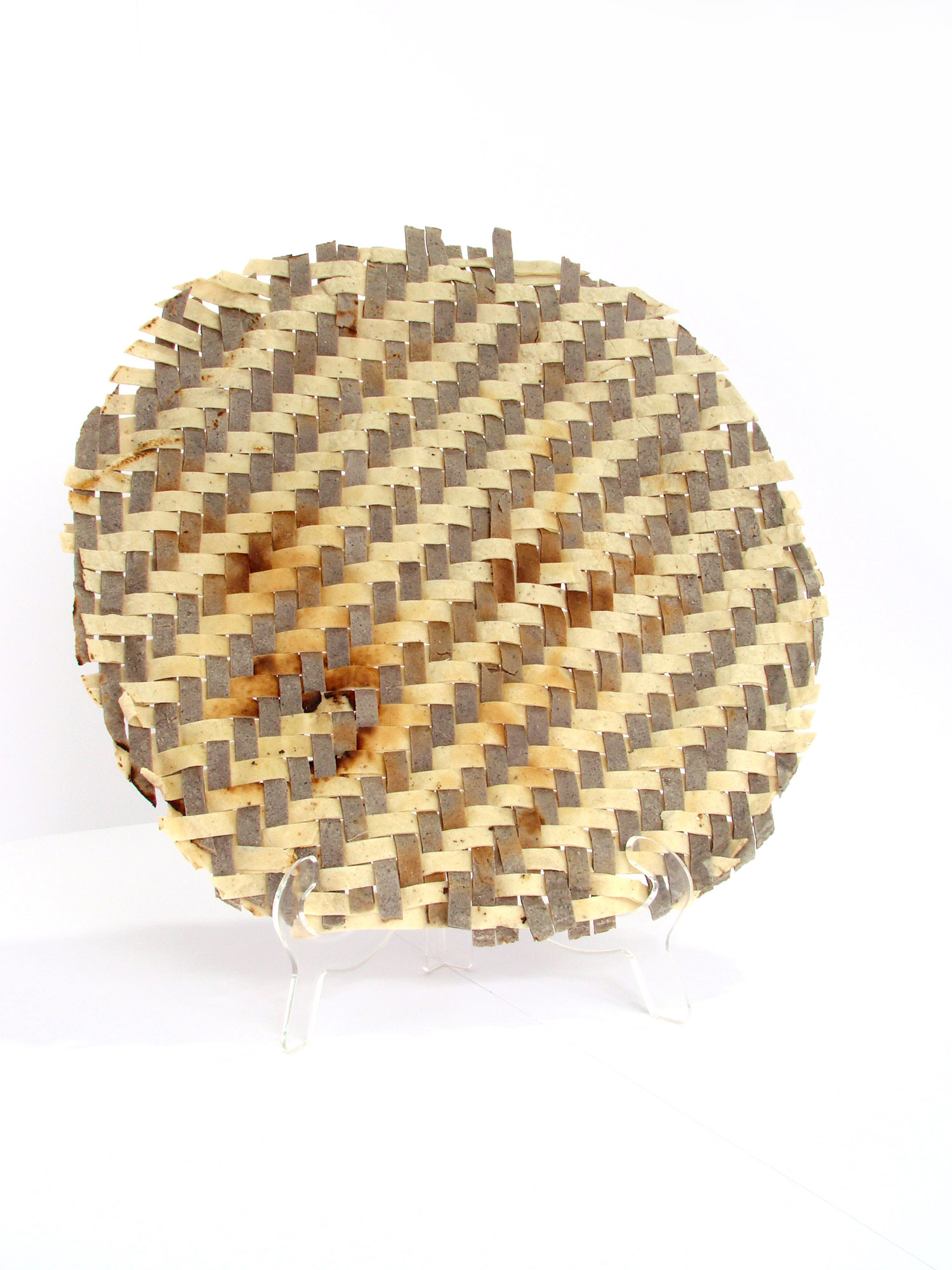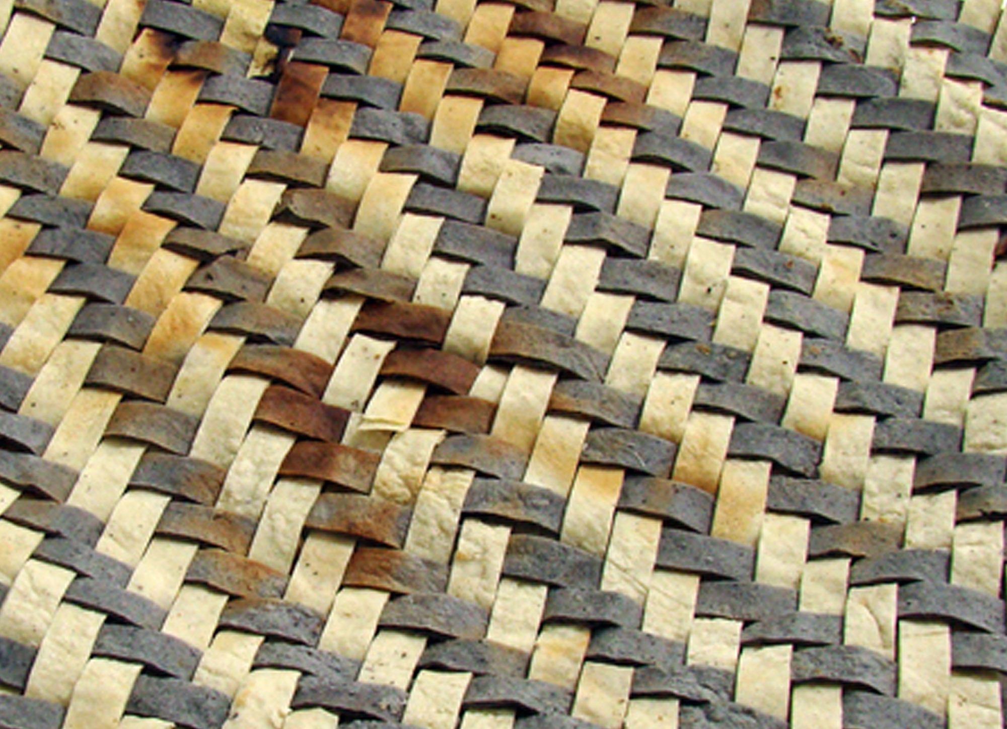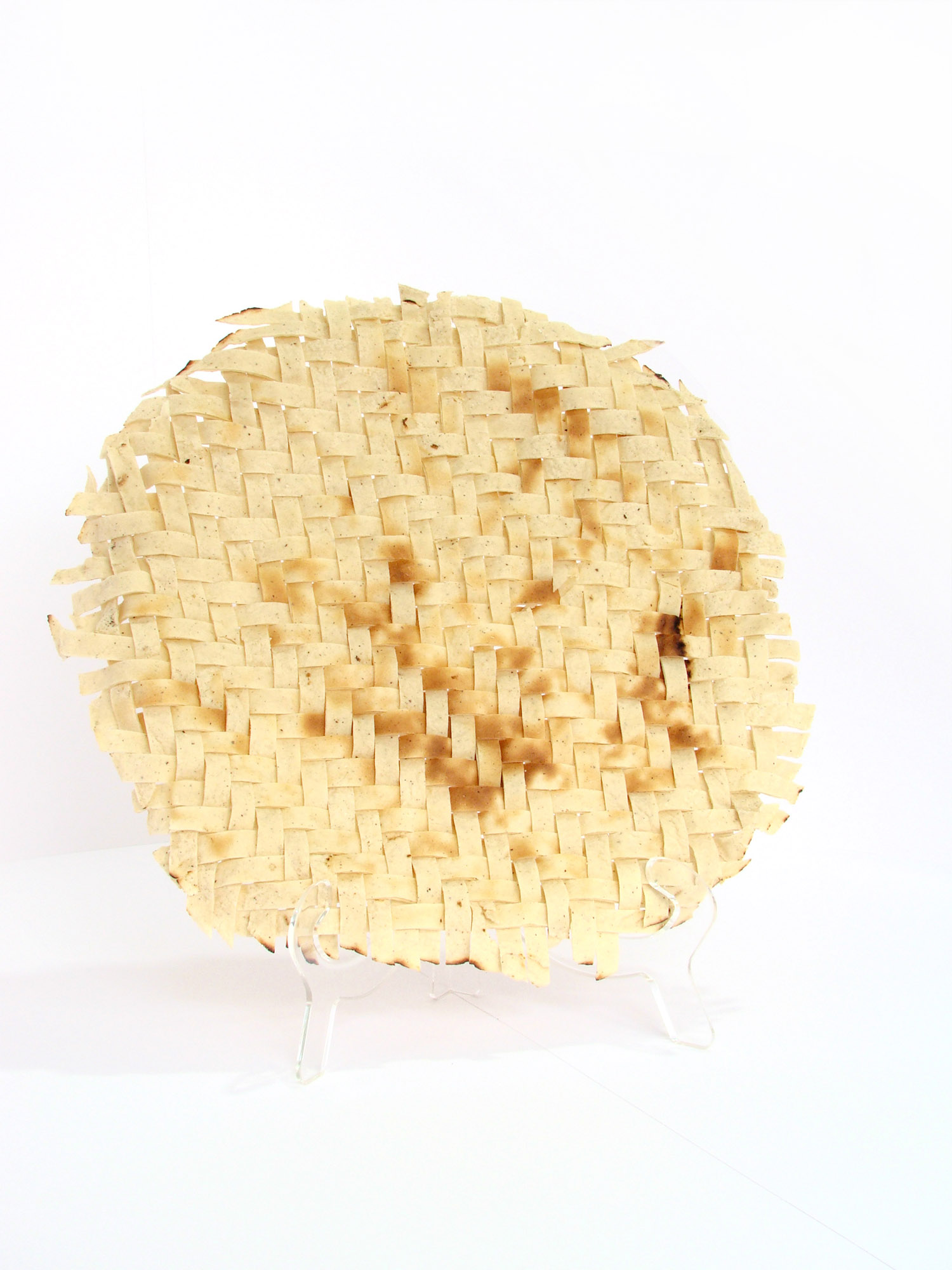 Tortilla recortada y entretejida manualmente con técnica artesanal inspirada en el tejido de petate